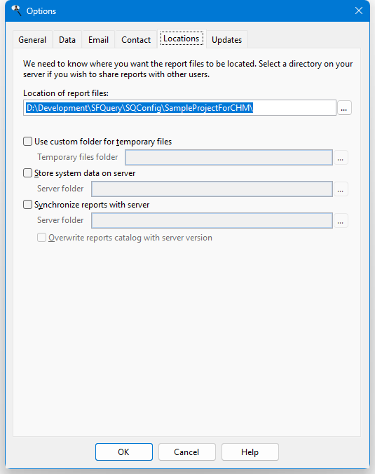 Synchronize reports with server: turning this setting on allows you to specify a folder on the server for synchronizing reports.