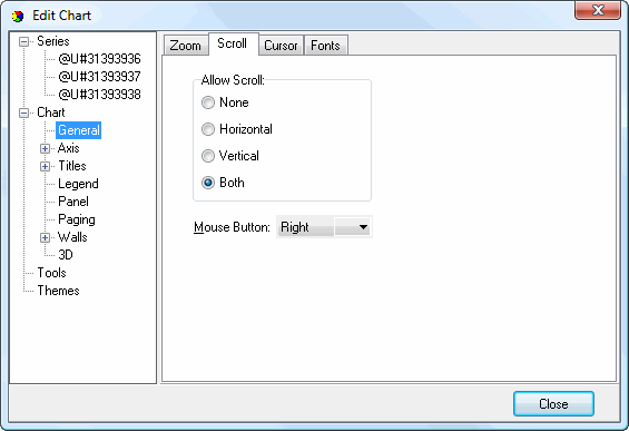 The Scroll subpage has the following options, which affect how scrolling the chart works: