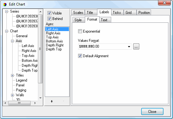 • Values Format: this specifies the format for values. You can either select one of the commonly used formats from the drop-down list or click the button beside the list to display the Numeric Format dialog.