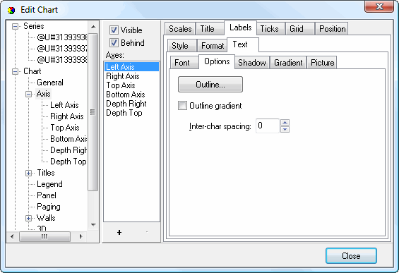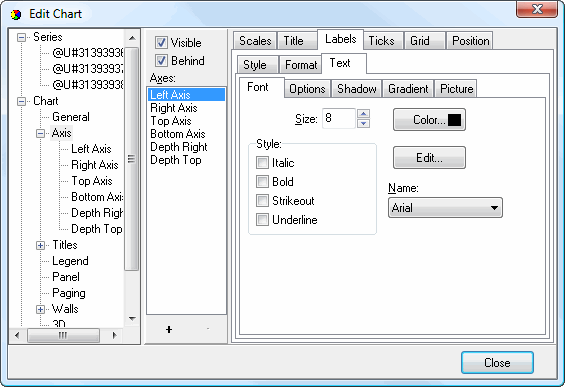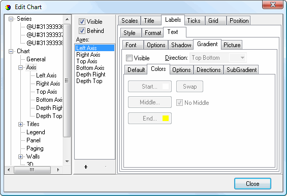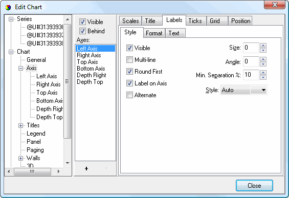 • Visible: this setting specifies whether labels display on the axis.