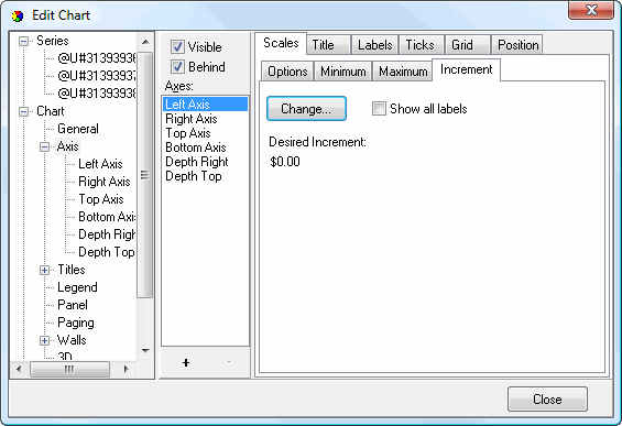 The Increment subpage of the Scales subpage specifies settings for the increment value for the axis scale. It has the following options: