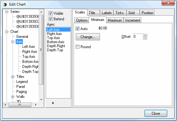 • Offset: this setting controls the offset for the minimum or maximum value from the appropriate end of the axis.