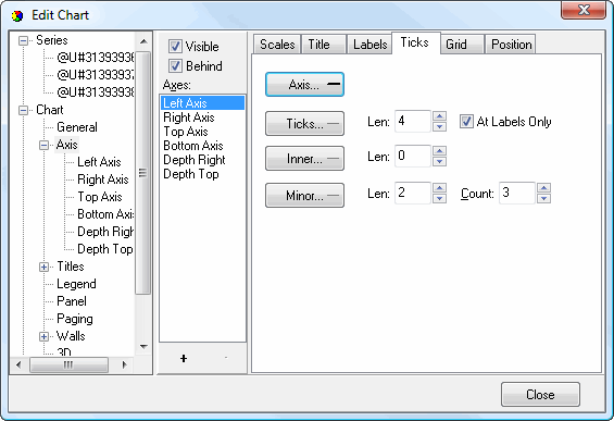• Len: this option specifies the length of the tick lines inside the axis line.
