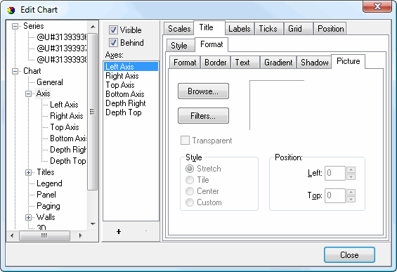 • Units: this affects the position value. "Percent" means the position value is a percentage of the total chart size while "Pixels" means the value is in pixels.