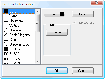 The Pattern Color Editor dialog displays when you click a button labeled Pattern. It has the following options: