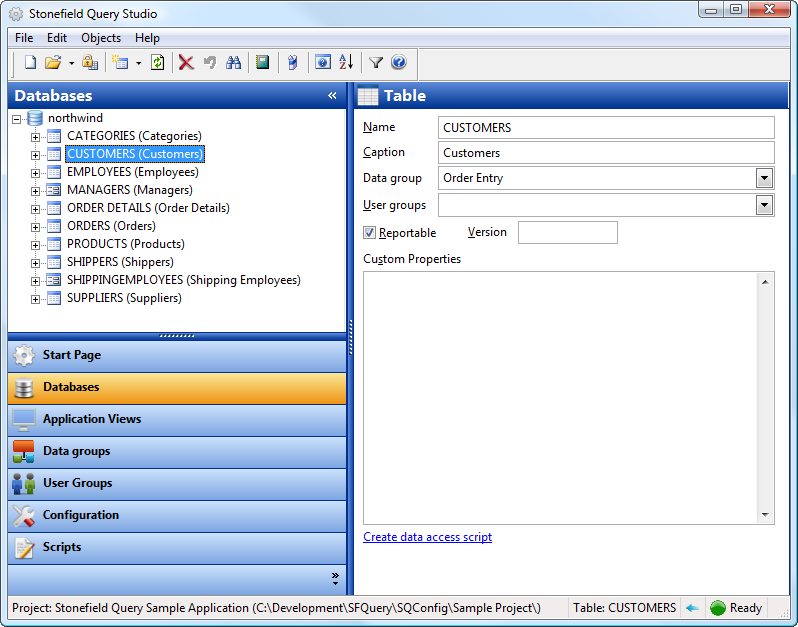 Stonefield Query is data-driven; it only knows how to query against a particular database if it has information about the database's tables, fields, and relationships. This information is known as "metadata" and is also sometimes referred to as a data dictionary.