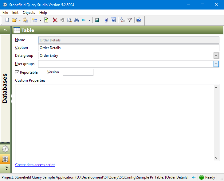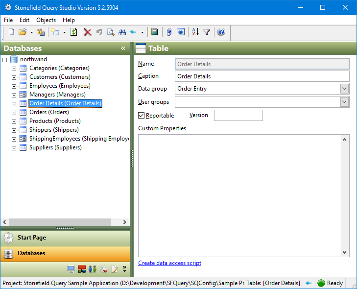 Getting Started: this task pane provides items that help you get started using Stonefield Query. Videos navigates your browser to the videos page of our web site, where you can watch videos showing various aspects of Stonefield Query. Help opens the first page of the Studio help file, while What's New opens the What's New topic in the help file. Support navigates your browser to the support page on the Stonefield Query web site and Stonefield Query Blog takes you to our blog. Open Sample Project opens the sample project that comes with the Stonefield Query SDK, in the Sample Project folder.