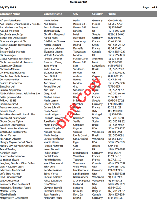 Click the Watermark button in the Print Options or Output Options dialogs to display the Watermark Options dialog. A watermark is an image or text that appears across every page. Here's an example: