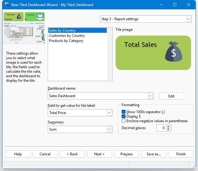 Step 3: Report Settings (Tiled Dashboard)